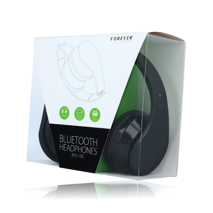 Forever BHS-200 Bluetooth sankakuulokkeet muistikorttipaikalla ja radiolla – Musta